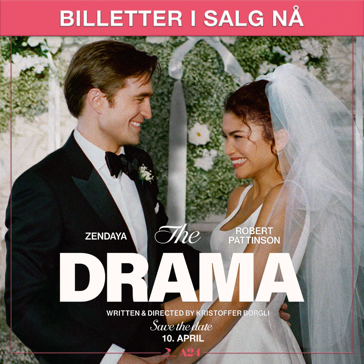 Fra hodestups forelsket til THE DRAMA❤️🔥 Zendaya og Robert Pattinson inviterer til høyspent bryllupsdrama på kino 10. april💍💝