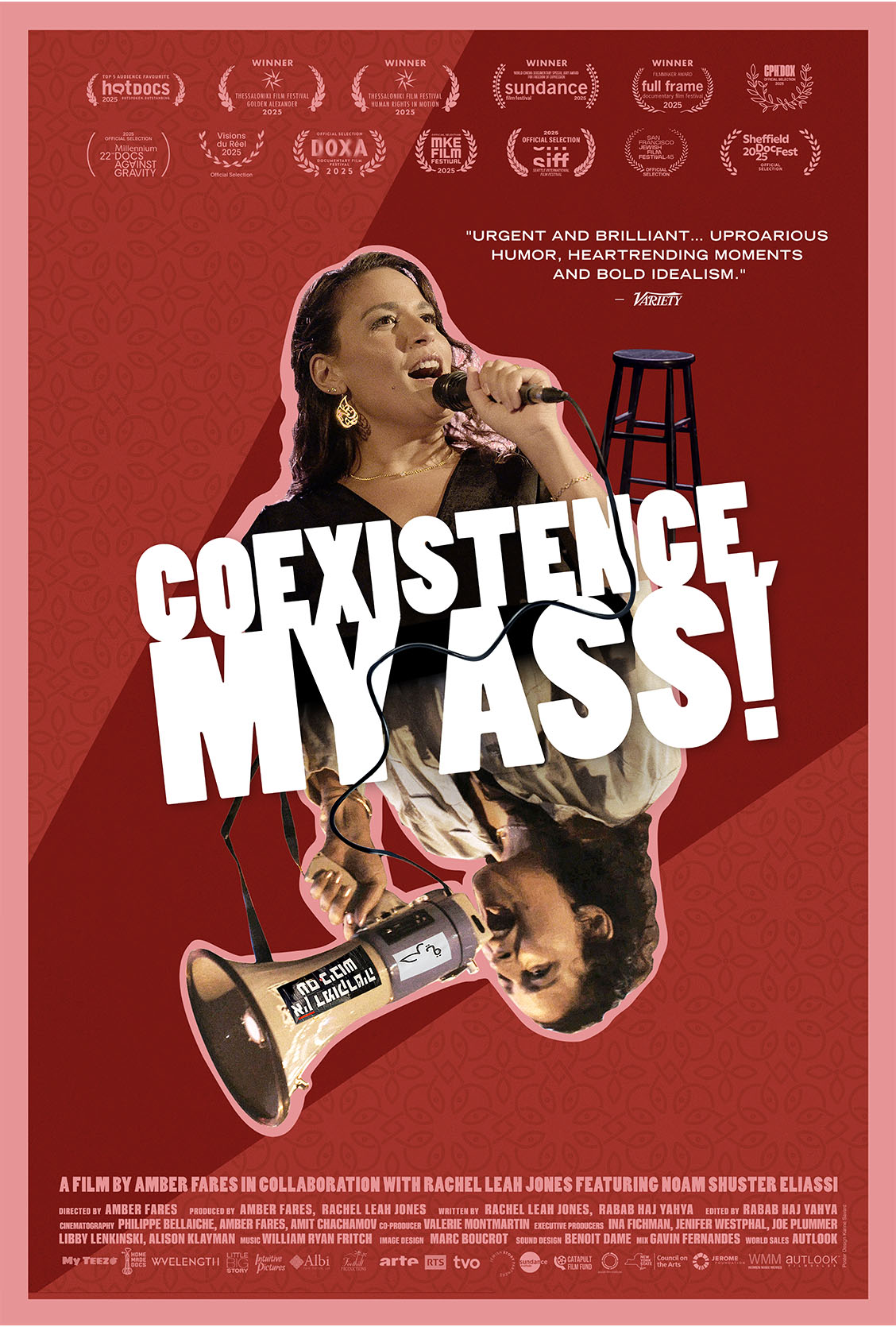 Coexistence, My Ass! tar utgangspunkt i Eliassis stand-up-show med samme navn. Hun vokste opp i lokalsamfunnet Neve Shalom/Wahat al-Salam, ofte omtalt som «Oasis of Peace». Her bodde palestinere og israelere sammen for å bevise at sameksistens faktisk kunne være mulig. Etter hvert som tiden går og volden mot palestinere øker – særlig i tiden etter 7. oktober – endrer hun gradvis tilnærmingen til ideen om sameksistens: Der det finnes en ubalanse i makt, vil sameksistens aldri kunne oppnås.